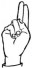На ћирилици написано МИА ШВРАКА састоји се из 9 слова [?]. Исписано ћириличном једноручном азбуком за глувонеме:
